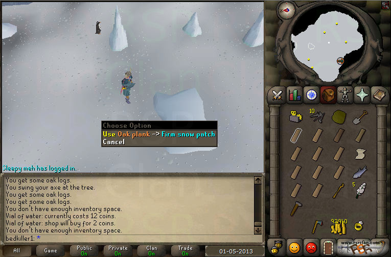 vertellen om je oak planks te gebruiken met een 'firm patch of snow' om