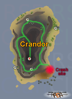Haal al je kaart stukken op en use ze op elkaar om 1 kaart te krijgen. Ga nu naar Draynor Village en spreek met Ned. Vraag hem of hij je schip naar Crandor wil varen, en geef hem de kaart als hij er om vraagt.