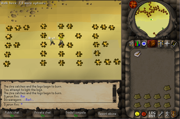 Requirements: Firemaking level 70, maak een screenshot waarin je de letters FIRE hebt gemaakt in vuur. Klik hier om een voorbeeld te bekijken. Het is verplicht om deze badge met 2 personen te halen, je mag het ook met iemand buiten rsr doen, elk van jullie dient RSR te zeggen in het screenshot en jullie zullen dan beide de badge krijgen. |